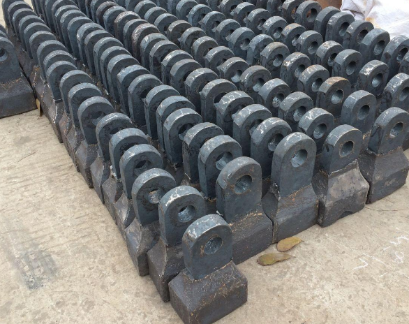 破碎機錘頭是錘式破碎機核心零部件之一,排列在破碎機轉子的錘軸上,在錘式破碎機運作時直接打擊物料。